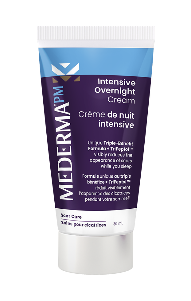 Certaines personnes préfèrent la crème au gel. La crème de nuit intensive contre les cicatrices MedermaMD PM et le gel contre les cicatrices MedermaMD Advanced peuvent tous deux réduire visiblement l’apparence des cicatrices grâce à une application quotidienne (ou nocturne). La crème de nuit intensive MedermaMD PM est formulée pour compléter l’activité régénératrice naturelle de la peau pendant la nuit grâce au TriPeptolMC, un complexe nourrissant pour la peau riche en peptides, en collagène et en antioxydants qui favorise une peau d’apparence saine pendant votre sommeil. Le gel MedermaMD Advanced peut être utilisé à tout moment de la journée.